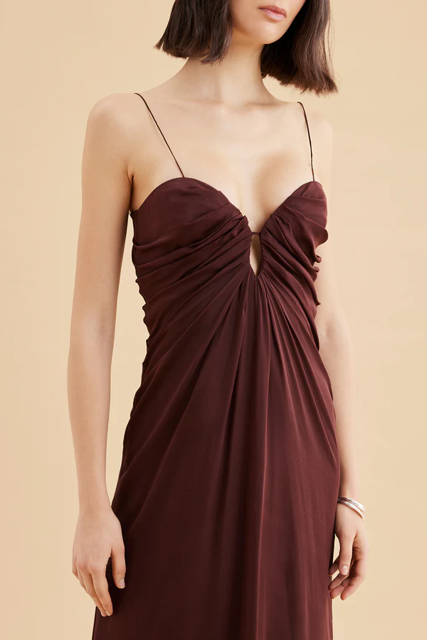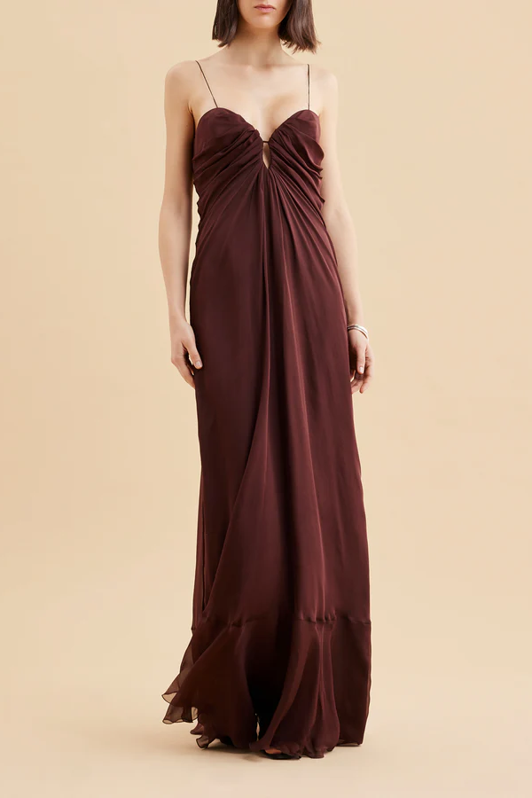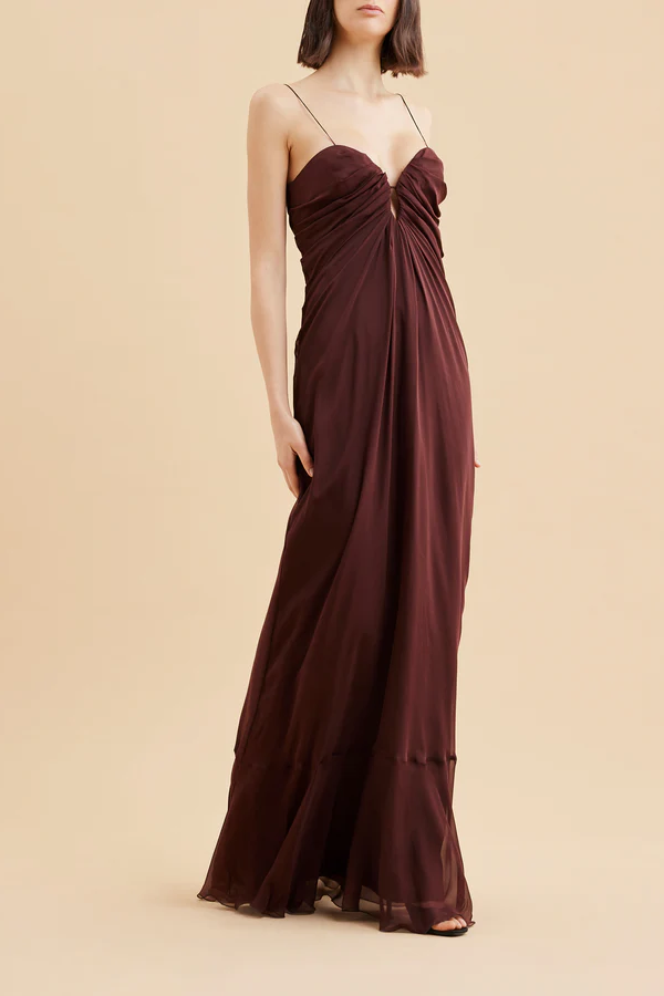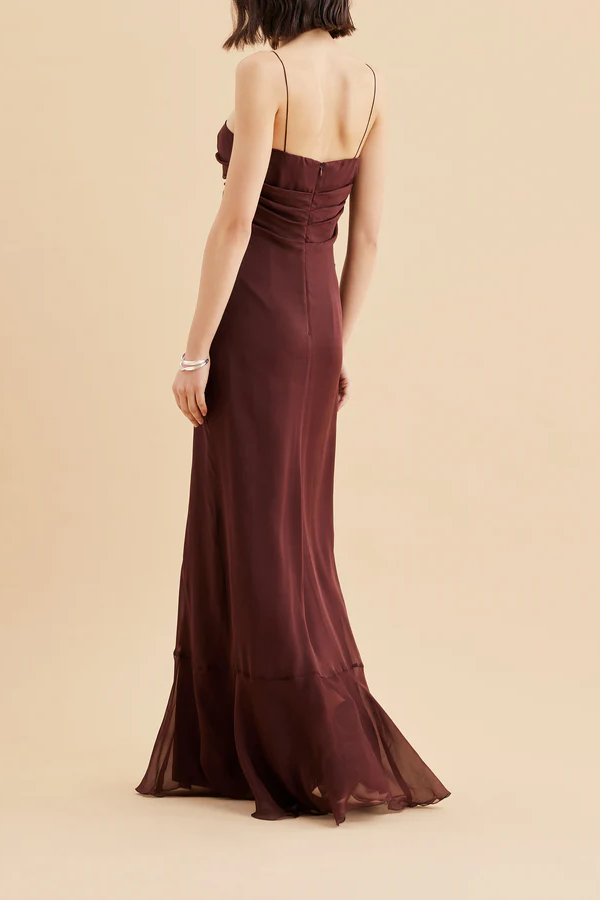 Woman's long dress100% SE - Silk ChiffonBordeaux Made in Italy