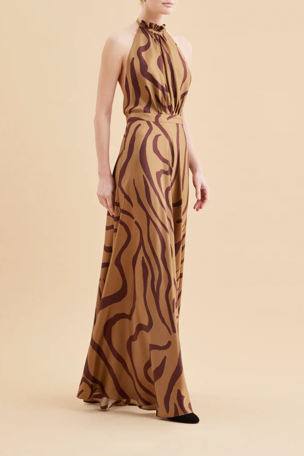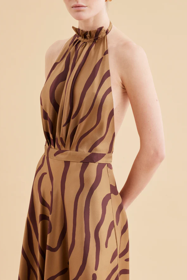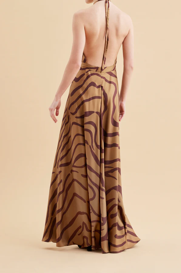 Woman's Long Dress100% SE - Printed TwillZebra Beige and Bordeaux Made in Italy